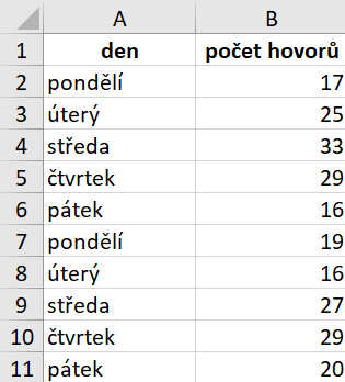 Funkcia pracujú s výberom z dát. Predstavte si nasledujúci zoznam, ktorý môže napríklad predstavovať počet hovorov za jeden pracovný deň počas dvoch pracovných týždňov: