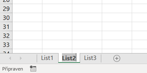 V prvom rade ide o premenovanie, ktoré vykonáme dvojklikom na názov listu, po ktorom nasleduje sprístupnení možnosti editácie (text je zvýraznený), zmenu názvu potom potvrdíme klávesou Enter. V názvoch listov sa vyhýbame medzerám a pokiaľ možno aj českým znakom, primárne to spôsobuje problémy pri programovaní vo VBA, ale problémy môžu nastať aj inde.