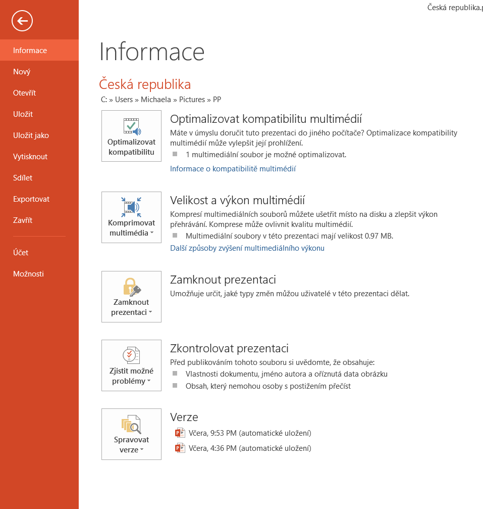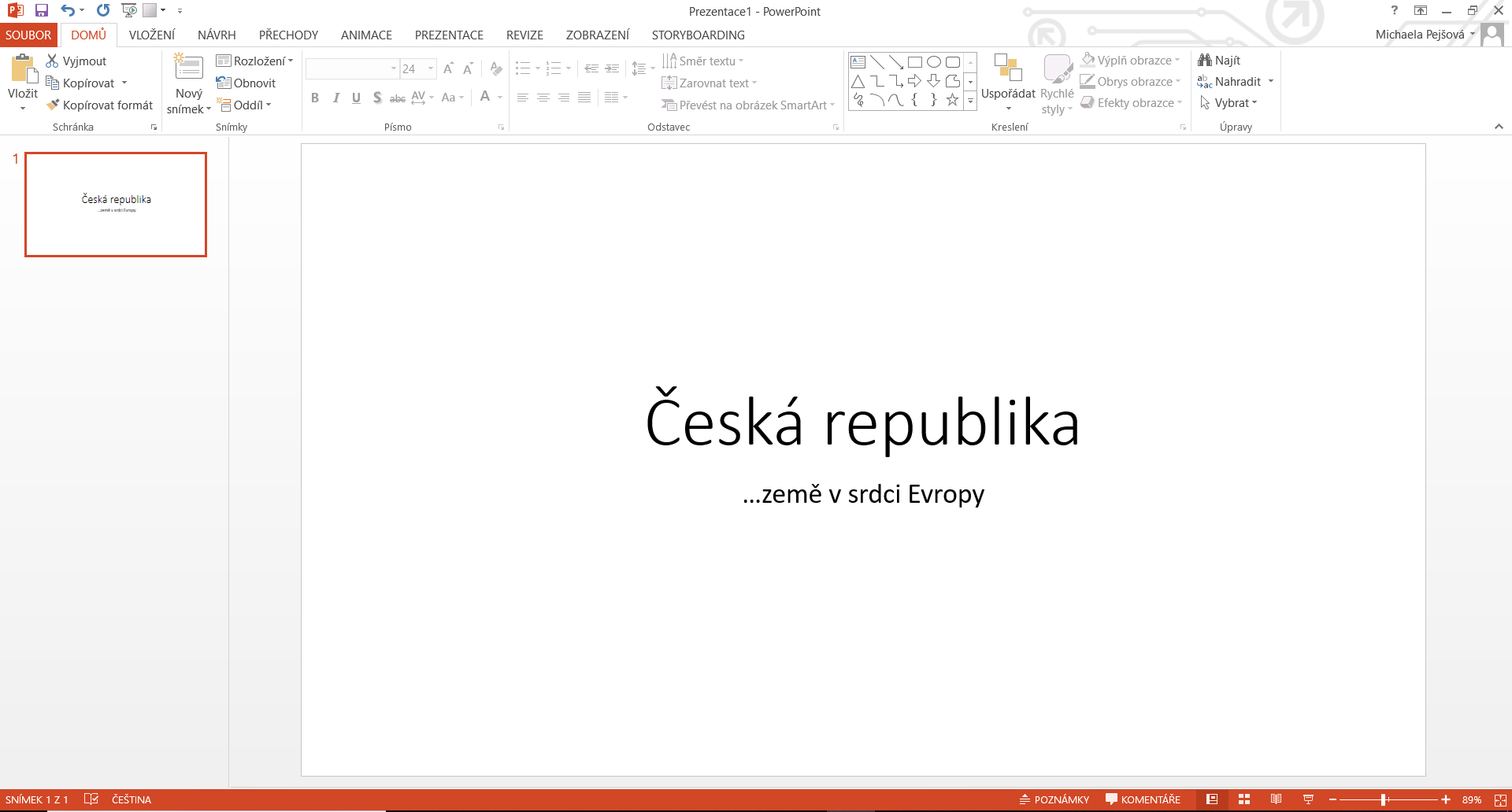 Vitajte u e-learning kurzu o tvorbe prezentácií v Microsoft PowerPoint. Minulá lekcie, Základy PowerPointe - Ako vytvoriť dobrú prezentáciu? , bola venovaná teoretickému základu. Dnes si vytvoríme jednoduchú sprievodnú prezentáciu krok za krokom. Naučíme sa orientovať v programe, vytvárať rôzne druhy snímok a vkladať do prezentácie rôzny obsah vrátane grafov a multimédií. Aby sme nevkladali len nezmyselné texty, vybrala som jednoduché témy - Česká republika.