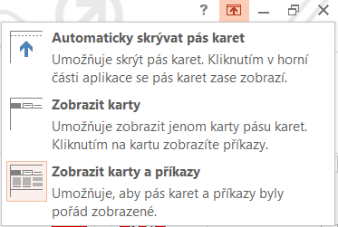 Ďalšie ikony sa nachádzajú na pravej strane, okrem tých pre ovládanie samotného okna programu sa tu nachádza ešte "Pomoc" a "Možnosti zobrazenia pásu kariet".