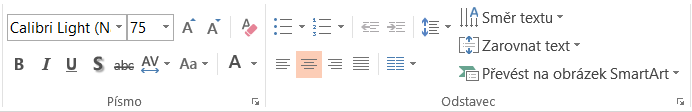 Text je možné formátovať vľavo hore v záložke "Domov" na páse kariet:
