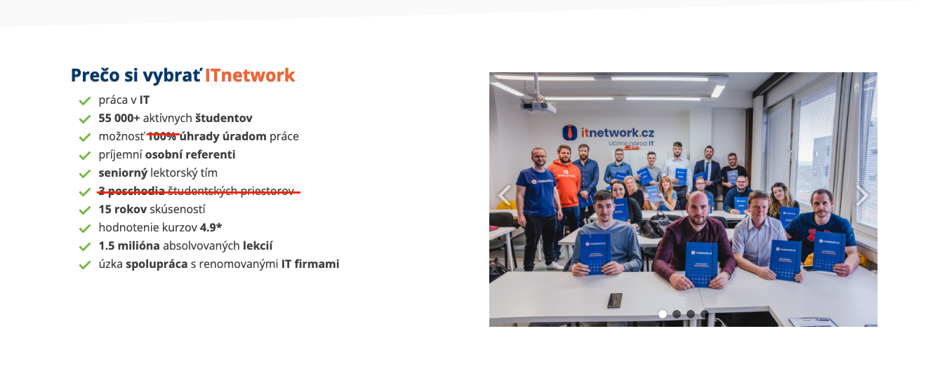 Prosím o odstranění červeně škrtnutých slov z SK landing page viz screenshot: