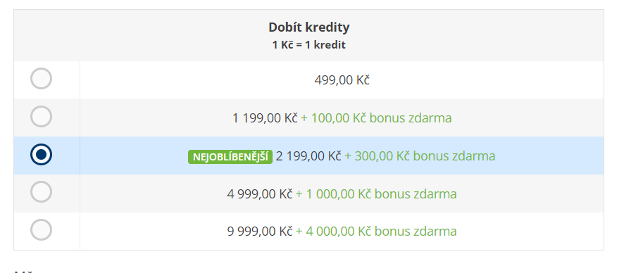 aktuálně napsáno 1 Kč=1 kredit. Možná bychom to mohli dát sem 1 euro =