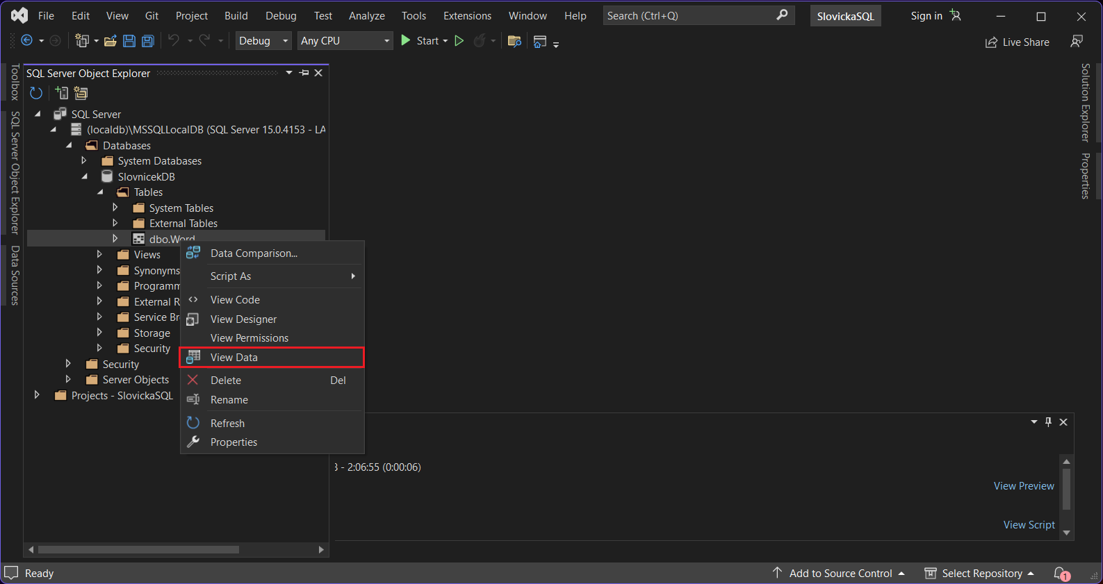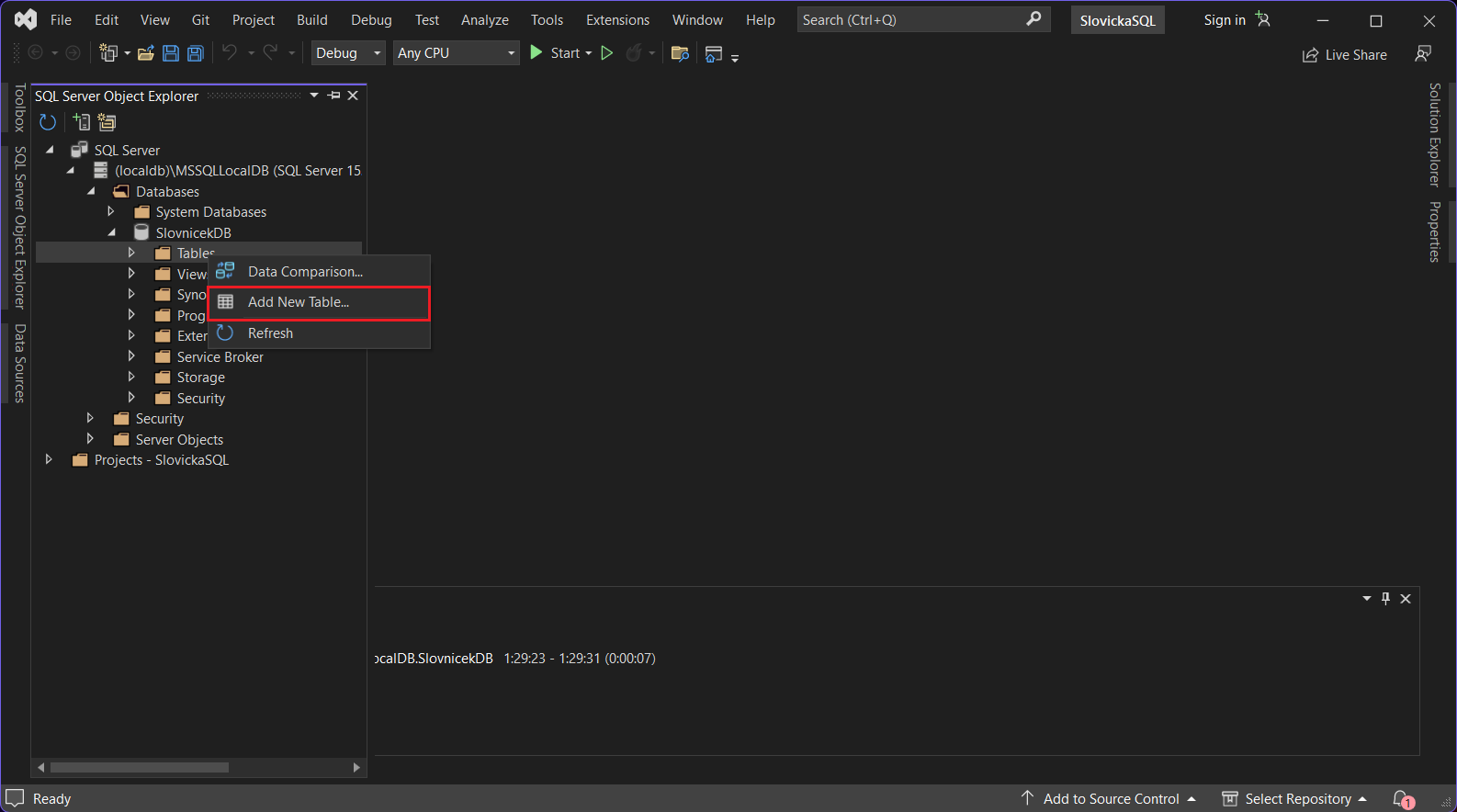 Object Explorer. My si otvoríme SQL Server Object Explorer,