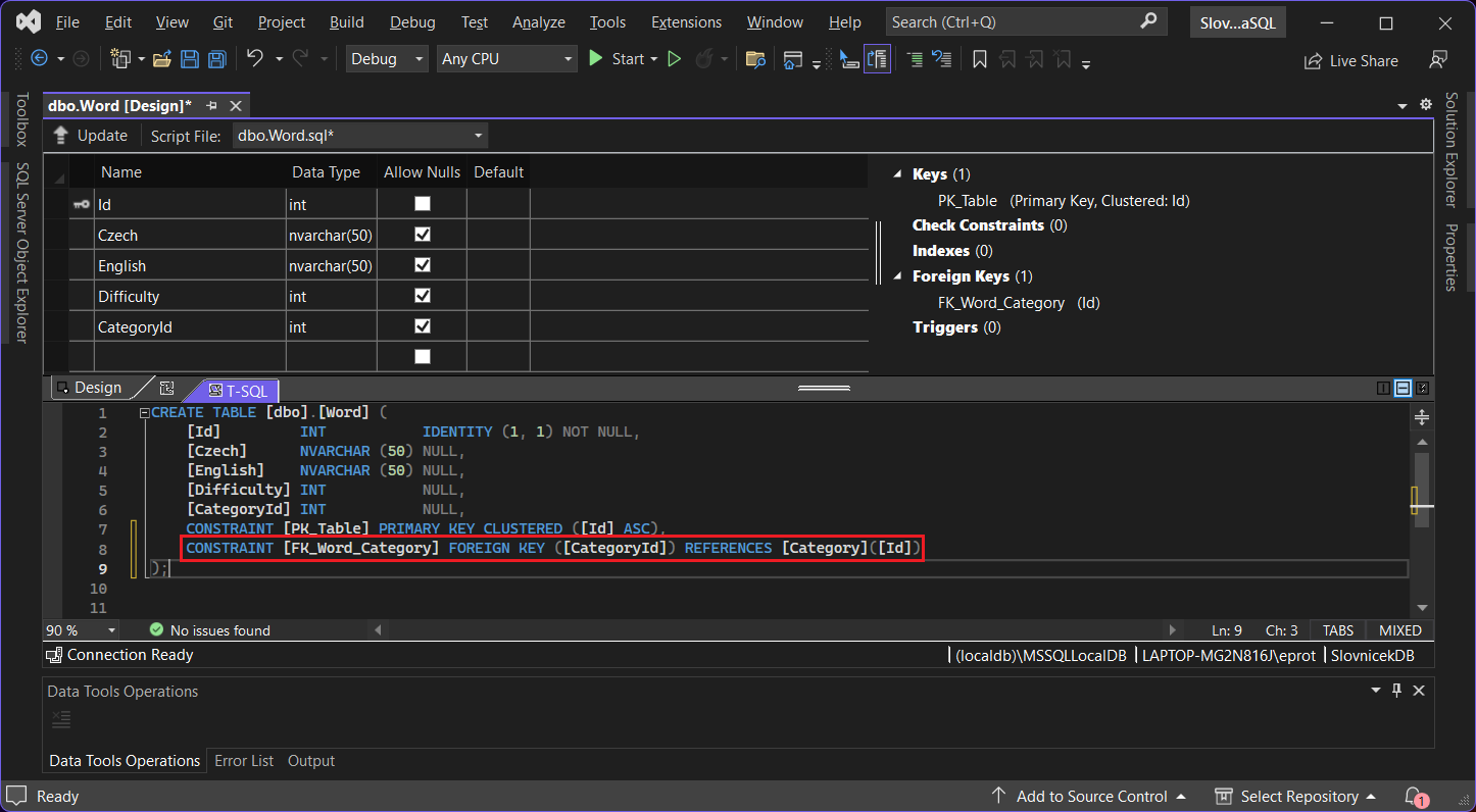 Tento cudzí kľúč (väzba) sa nám vygeneroval aj v T-SQL kóde: